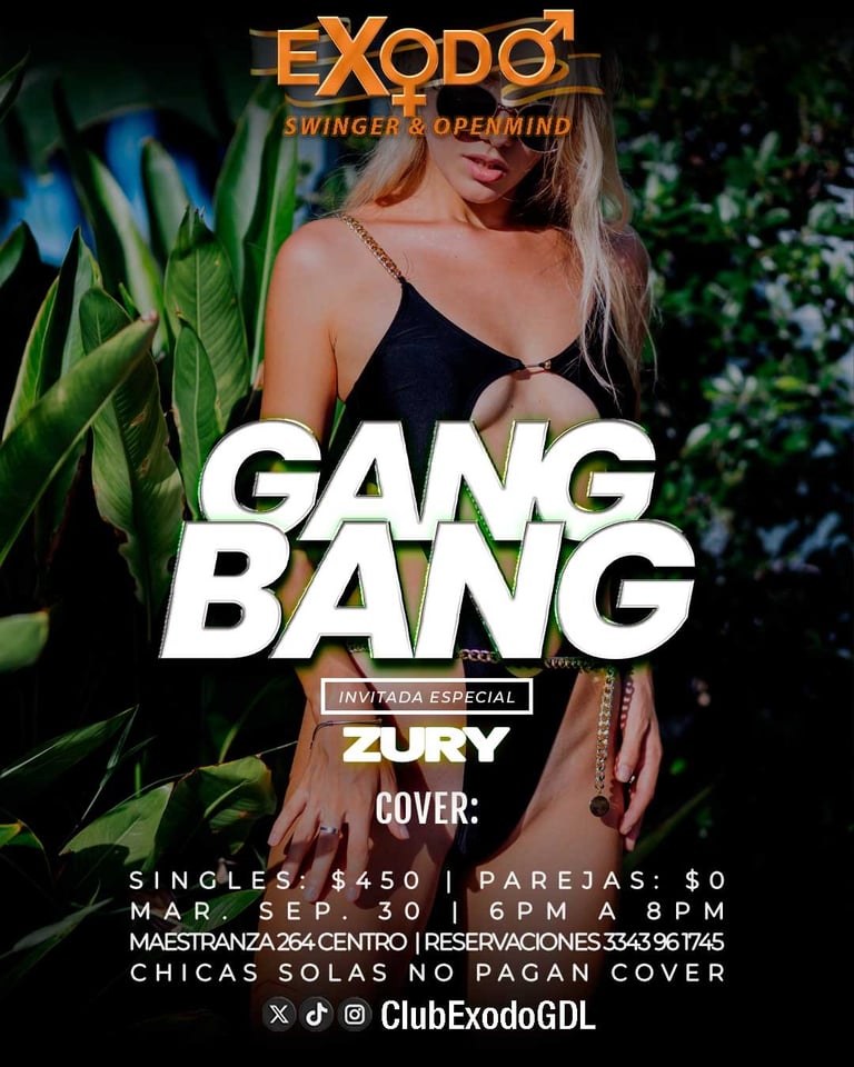Sabado de 9 pm a 5 am | Singles $650 | Trans $350 | Parejas $350